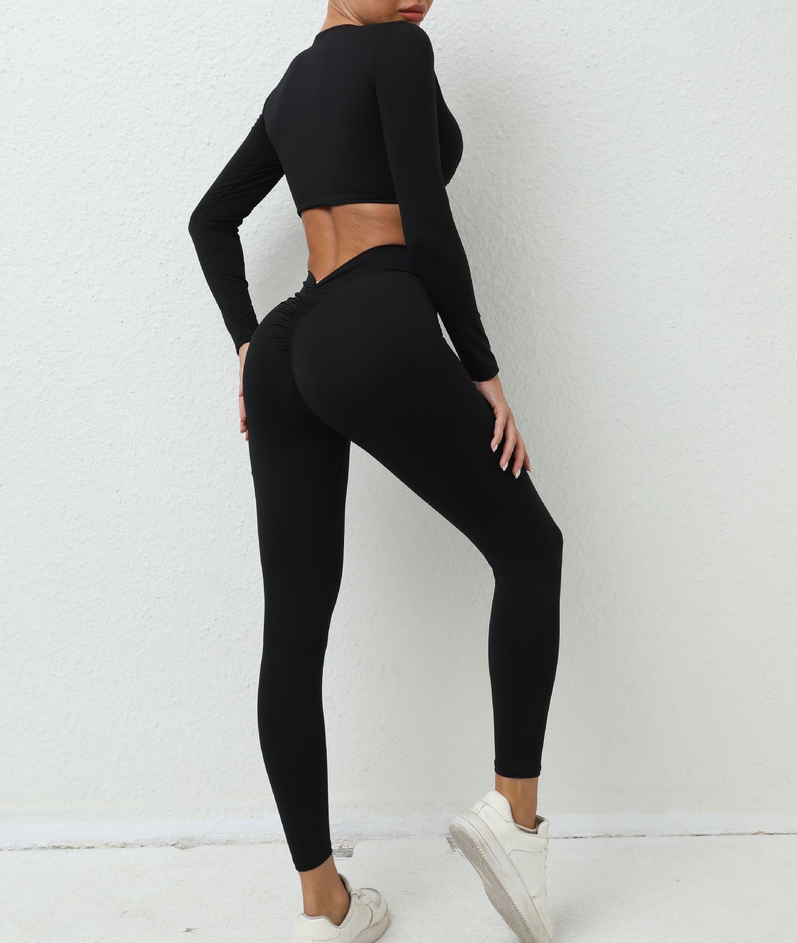 **High Waist & Long Sleeve Front Twist:** The high waist design not only provides exceptional tummy control but also ensures a flattering and secure fit. The long sleeve front twist detail adds a touch of sophistication, making this collection suitable for both workouts and casual outings.